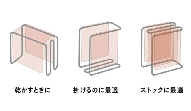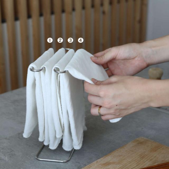 スタンドの向きを変えるだけで、乾かす・掛ける・ストックするの3通りに対応できます。ふきんの使い方に合わせて、これひとつで快適に使えます。