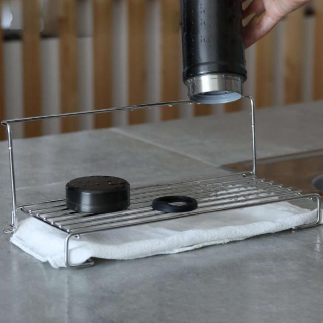 本体はもちろん、キャップやパッキンなどの小さなパーツもまとめて乾かせる設計です。