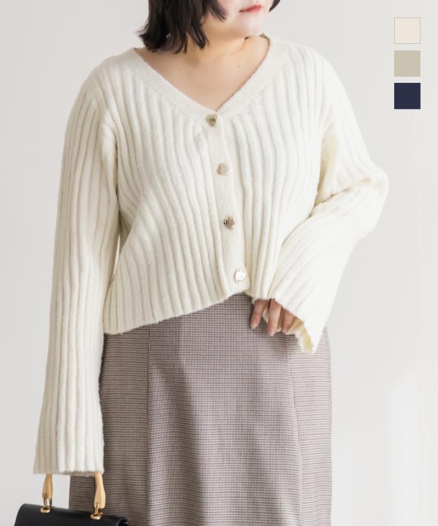 大きいサイズ/レディース/LL/3L/4L/CLETTEオリジナルハートボタンリブニットカーディガン