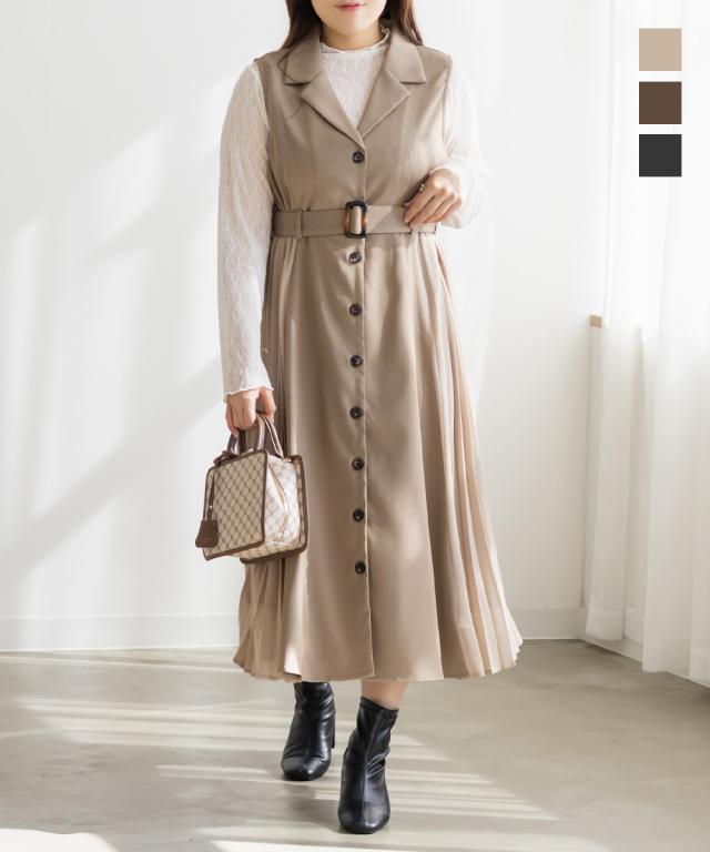 大きいサイズ/レディース/LL/3L/4L/CLETTEオリジナルサイドプリーツジレワンピース