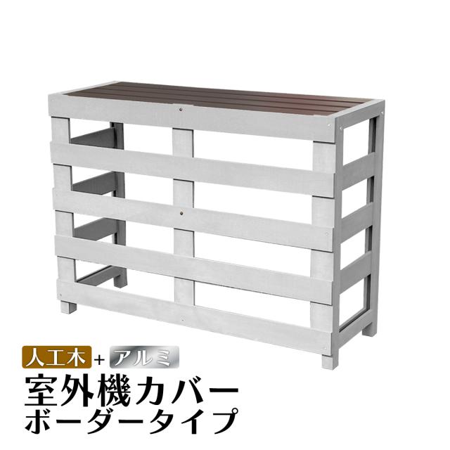 室外機カバー ホワイト 人工木 アルミ製 ボーダータイプ 内寸幅910 奥行305 高さ710 組立式 アイウッド人工木製 屋外用 ガーデンファニチャー 耐候性 直射日光対策 熱効率UP 鉢置き可能