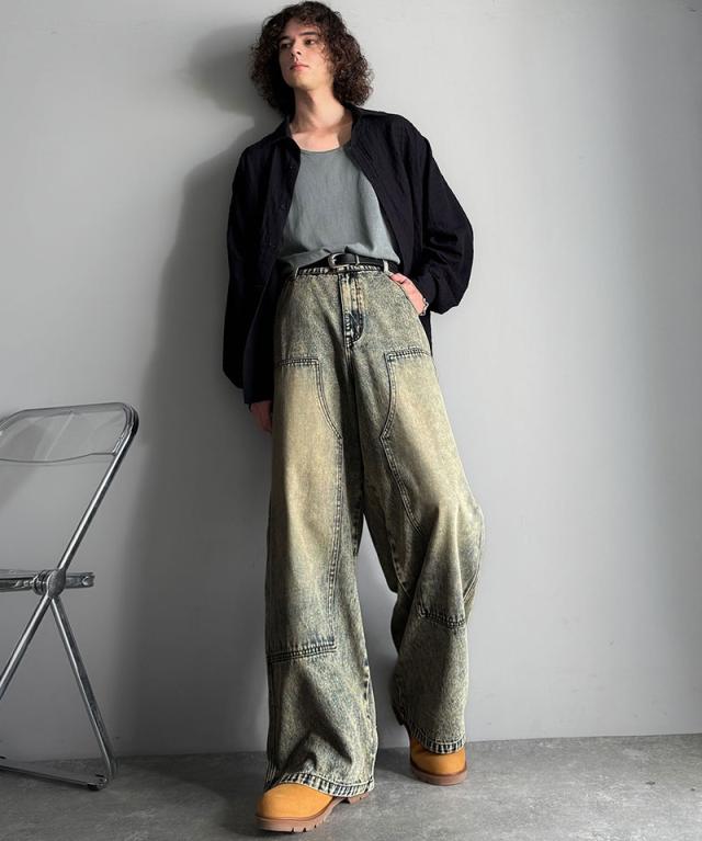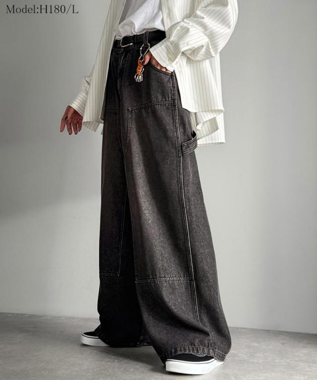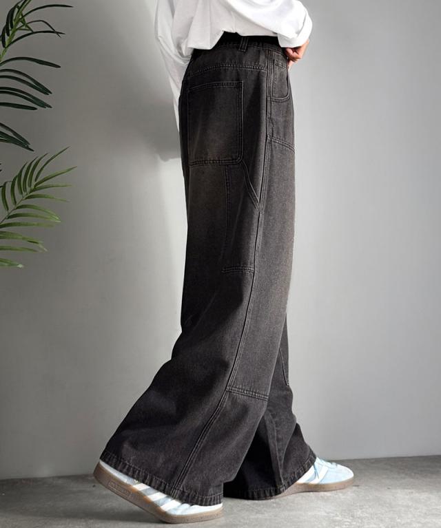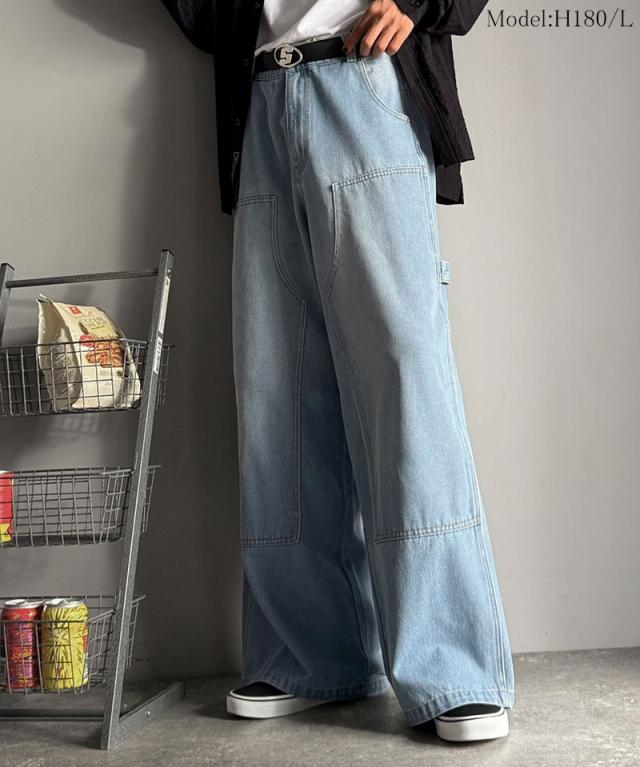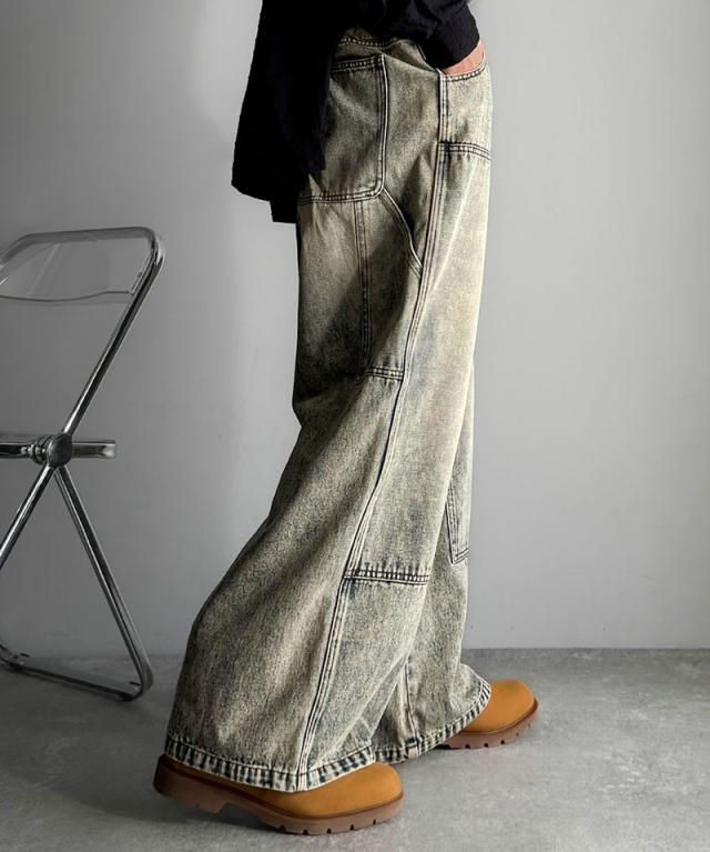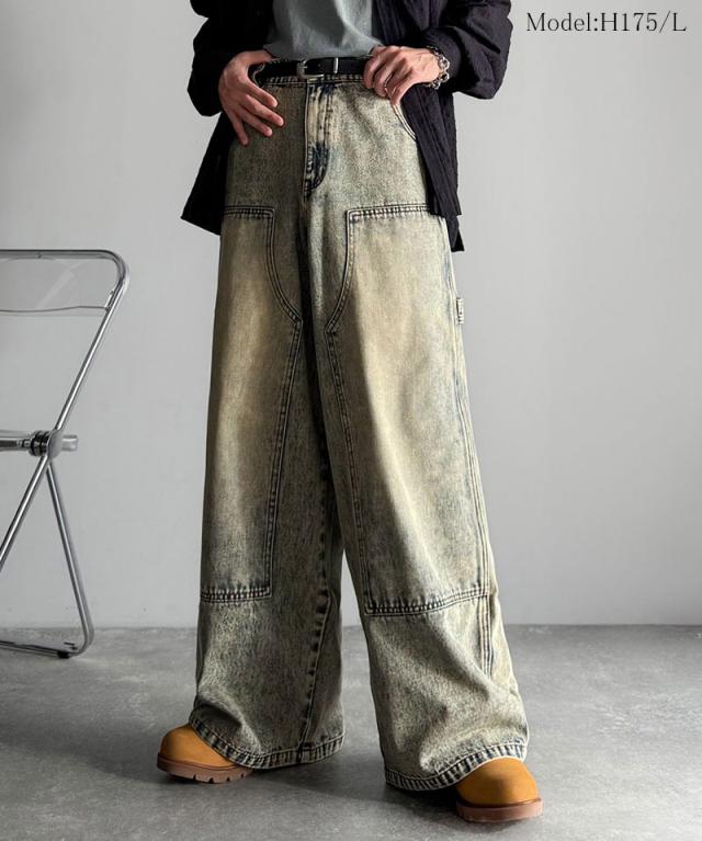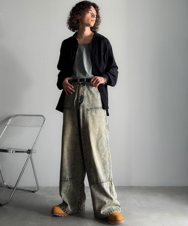 クラシカルエルフ冬新作 Classical Origin ボトムス パンツ メンズ デニムパンツ ワイドパンツ ペインターパンツ ワークパンツ ダブルニーポケット ヴィンテージ ブラスト加工 コットンデニム ユニセックス 大きいサイズ 2025aw co0900003