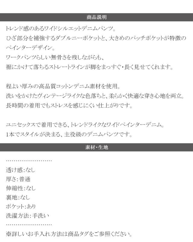 ユニセックスで着用できる、トレンドライクなワイドペインターデニム。