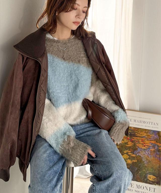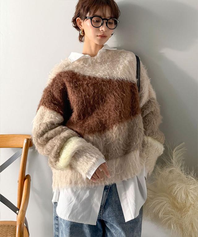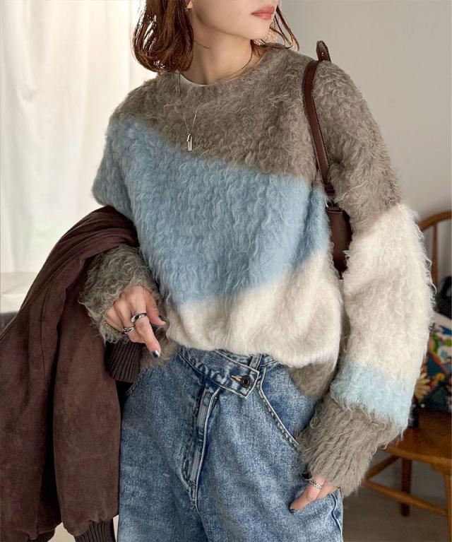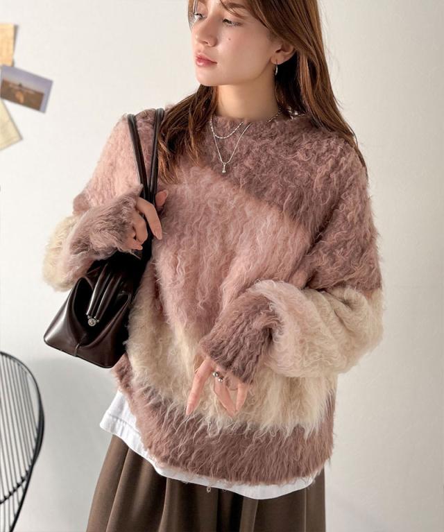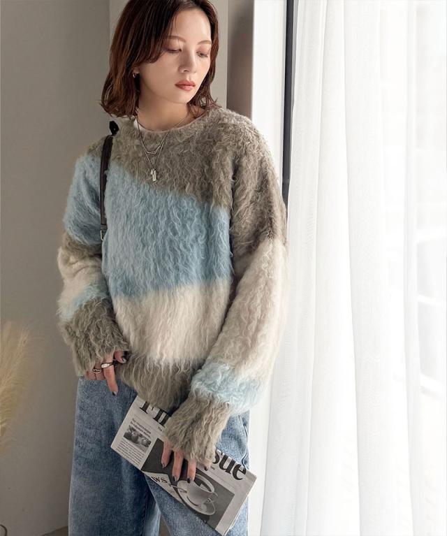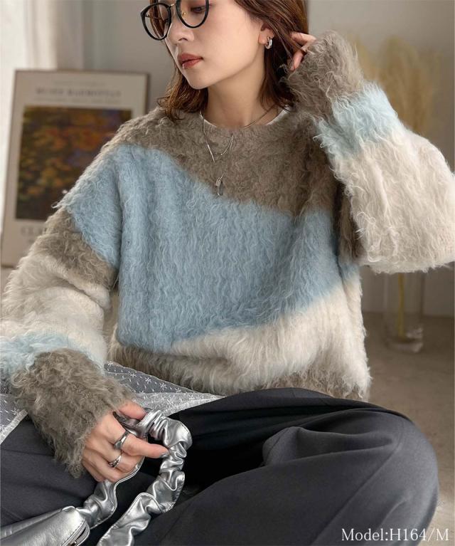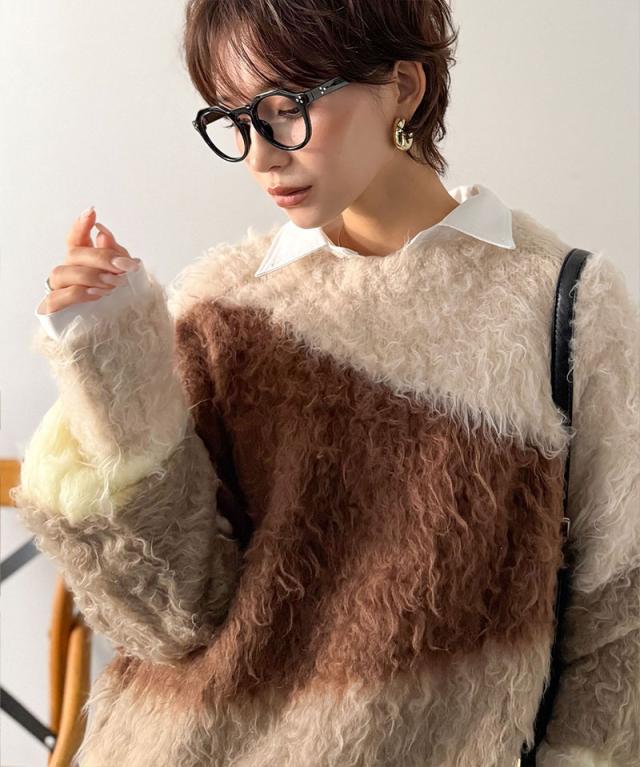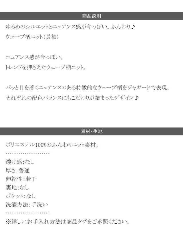 クラシカルエルフ冬新作 ニット レディース ゆったり トップス ふんわり ニュアンス ウェーブ 柄 セーター 長袖 ゆるっと オーバーサイズ 着回し 大きいサイズ 2025aw ce1330049