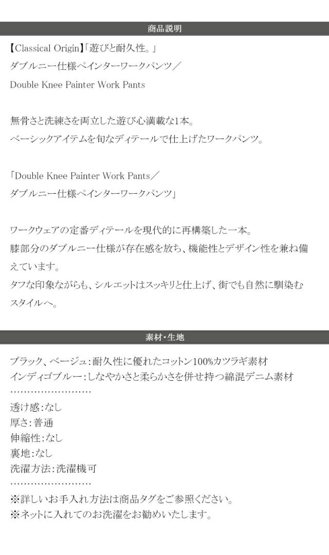クラシカルエルフ冬新作 Classical Origin ボトムス パンツ メンズ ダブルニー 仕様 ペインター ワークパンツ チノパンツ 大きいサイズ 2025aw co0780007