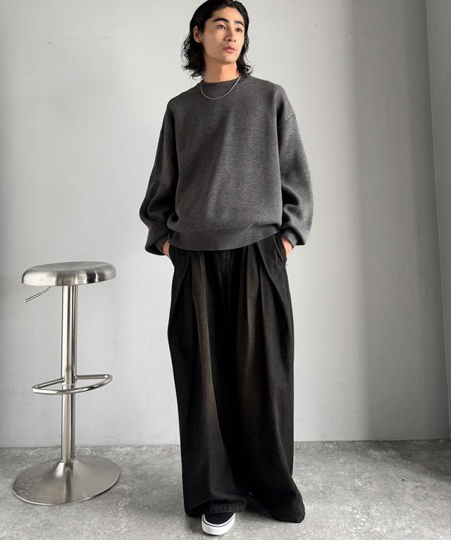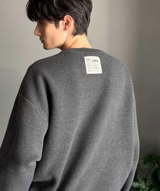 クラシカルエルフ冬新作 java ジャバコラボ ニット メンズ セーター トップス プルオーバー スウェットライク ダブルフェイス 上品 ルーズシルエット ハリ感 柔らか ドロップショルダー ゆとり 抜け感 配色デザイン きれいめ 大きいサイズ 2025aw jm1020282