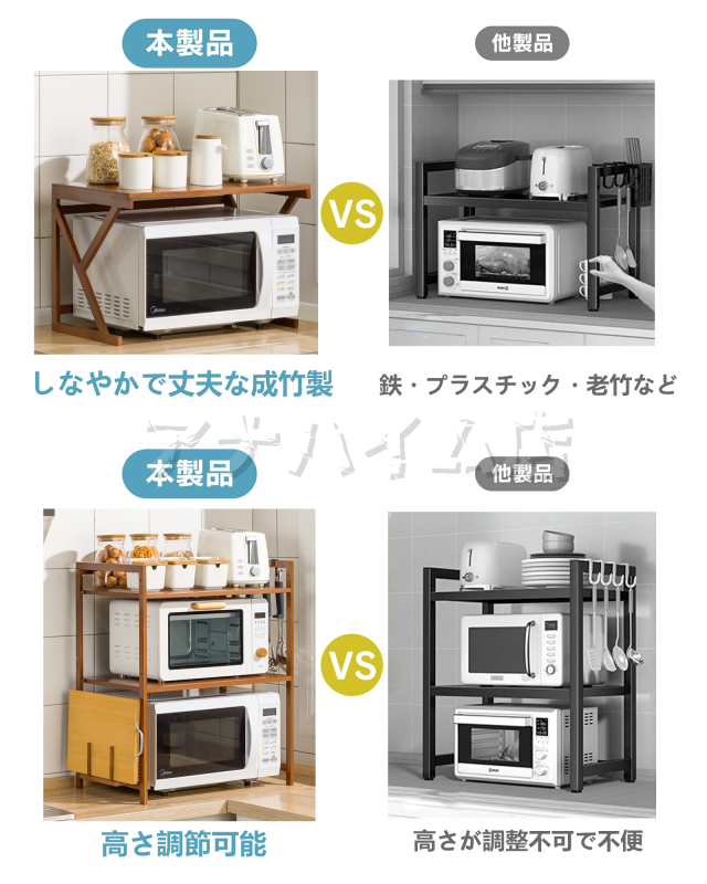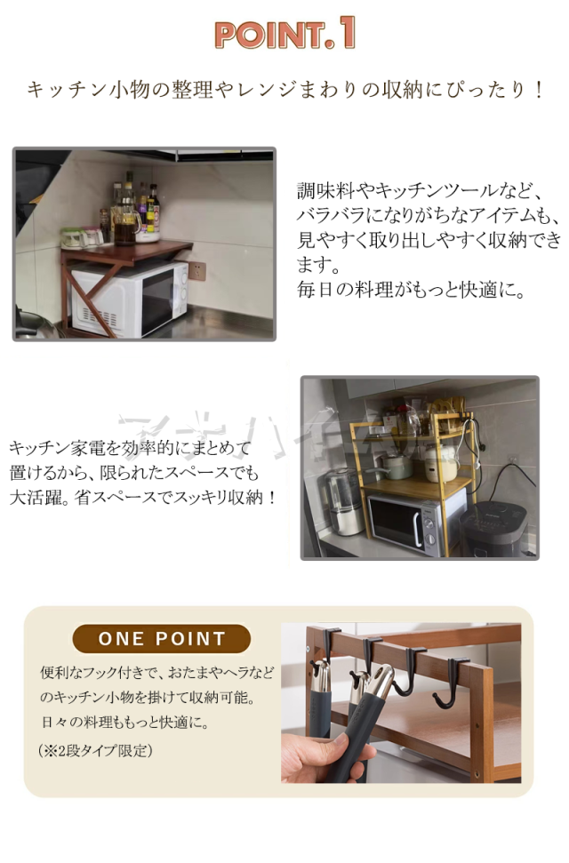 キッチンラック レンジラック 木製 キッチン収納 調味料ラック まな板収納 レンジ台 食器棚 キッチンボード ラック 収納 多目的ラック 卓上収納 収納ラック オープンシェルフ スパイスラック オープンラック 小物収納 省スペース 組み立て簡単 デスクトップ調味料オーブン収納ラック 竹製 木製