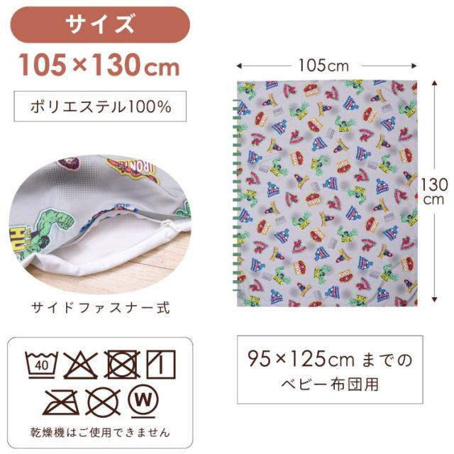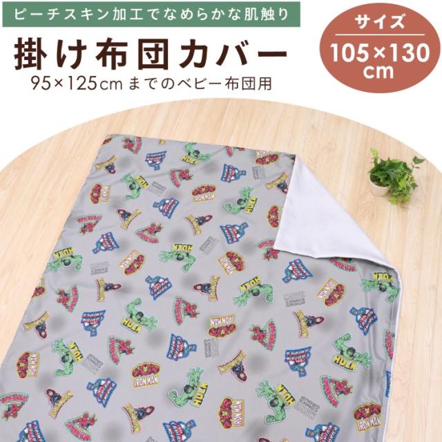 マーベル アベンジャーズ ベビー 掛布団カバー 105×130cm MARVEL 吸水加工 ピーチスキン生地 ファスナー ベビー用品 新品 新生児 スパイダーマン アイアンマン ハルク グレー un doudou メール便発送(ポスト投函) NP