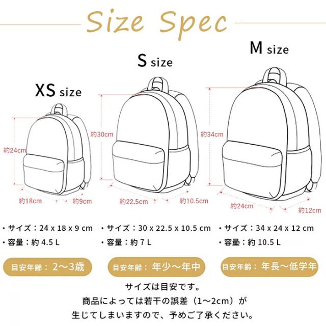 ■サイズ:XSサイズ/約W18×H24×D9(cm) 容量約4.5L 約190g