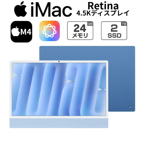 【ハイエンドモデル】 apple iMac Retina 4.5K ディスプレイ VESA マウント アダプタ 搭載モデル M4チップ メモリ 24GB SSD 2TB Thunderbolt4 ポート 搭載 キーボード マウス 付属 アップル アイマック デスクトップ パソコン 新品 ブルー Z1KD