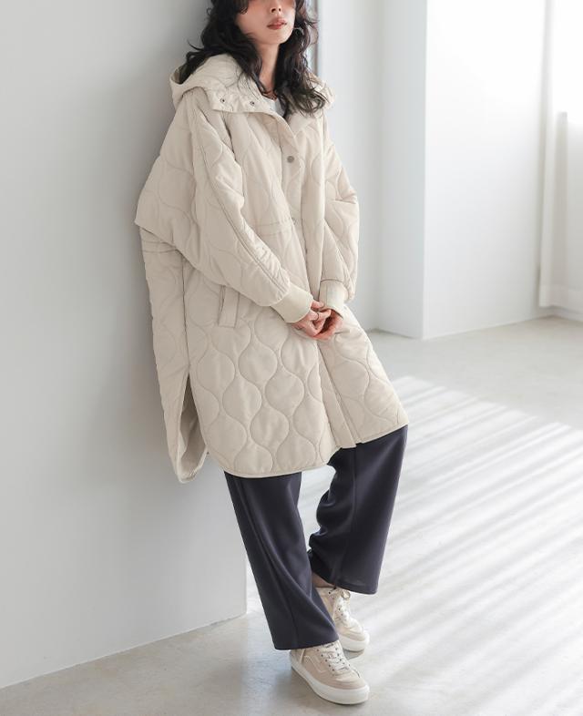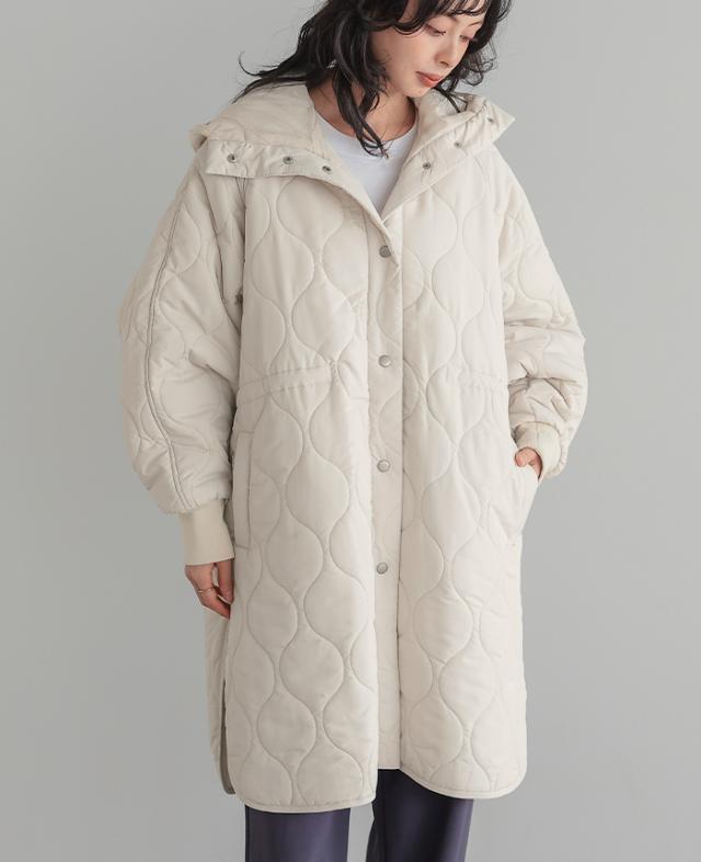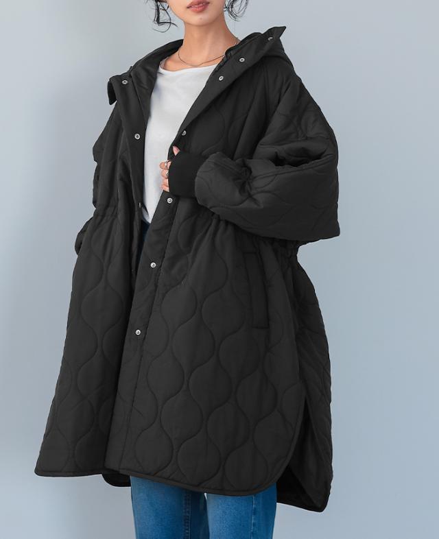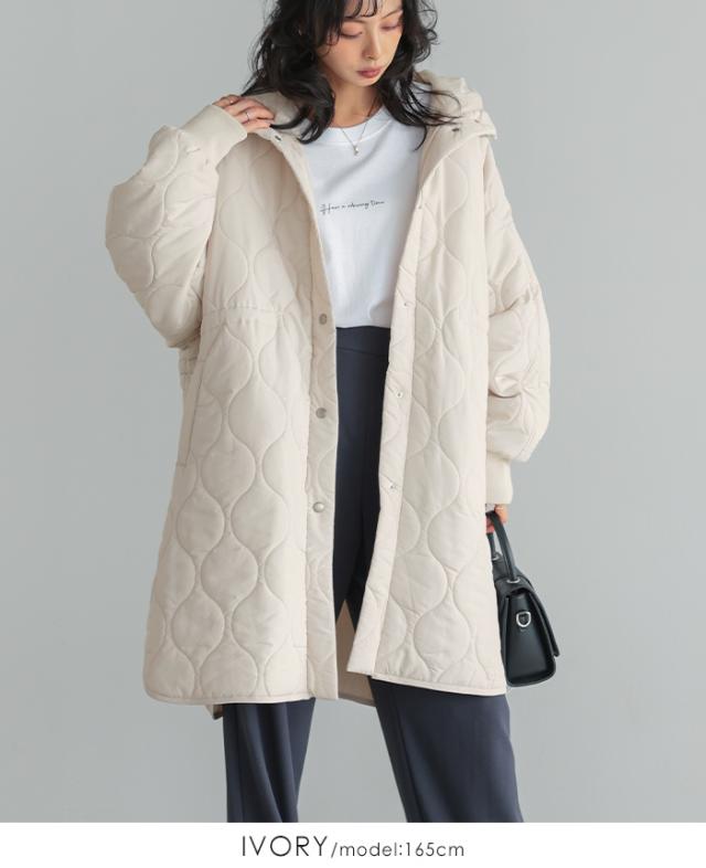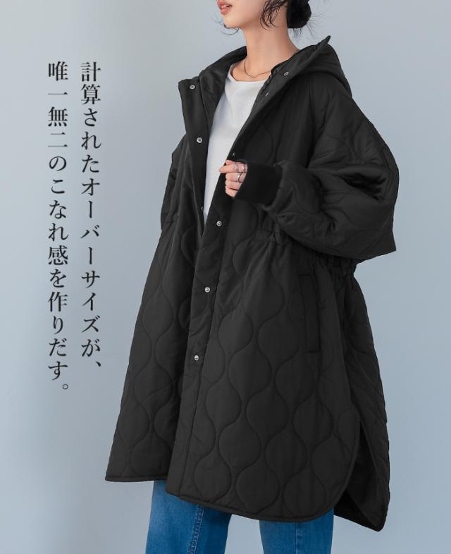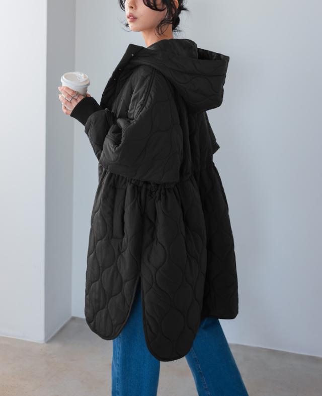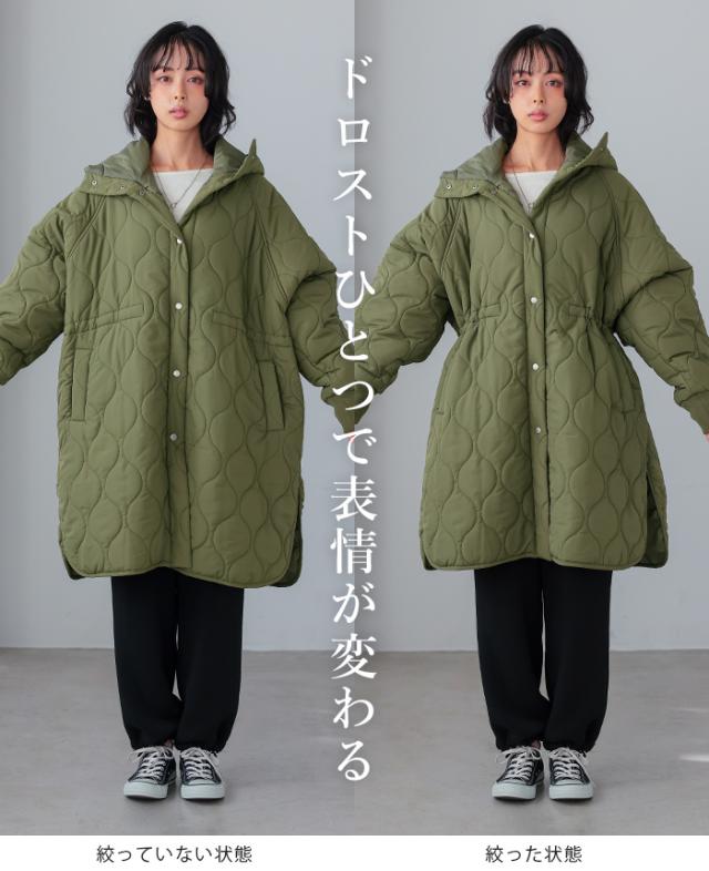 [新作限定P10%×送料無料]キルトフード付きコート キルティングコート コート レディース アウター 中綿 防寒 あったか フード 体型カバー ミドル丈 秋冬 冬新作【メール便不可】
