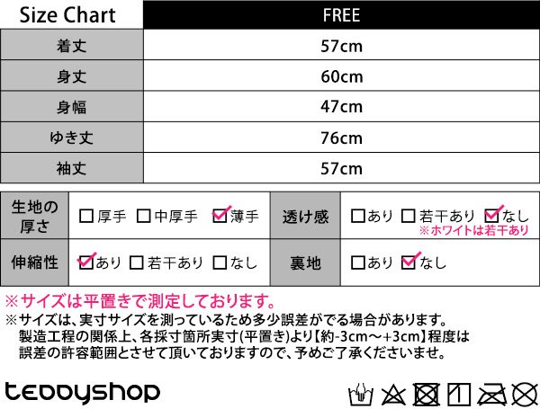 製造工程の関係上、各採寸箇所実寸(平置き)より【約-3cm〜+3cm】程度は