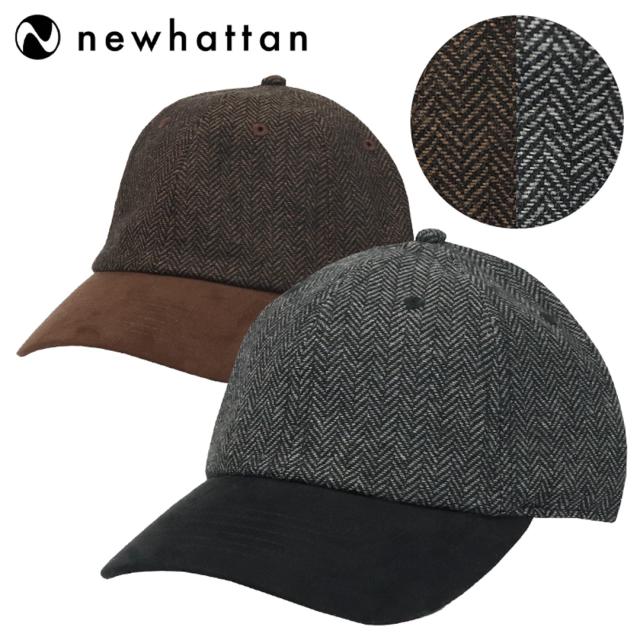 ウールキャップ 帽子 キャップ ニューハッタン メンズ レディース ヘリンボーン 秋 冬 スウェード Newhattan ブランド 野球帽 男女兼用 ローキャップ おしゃれ
