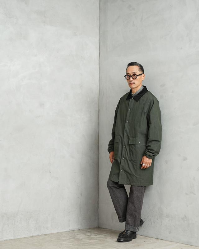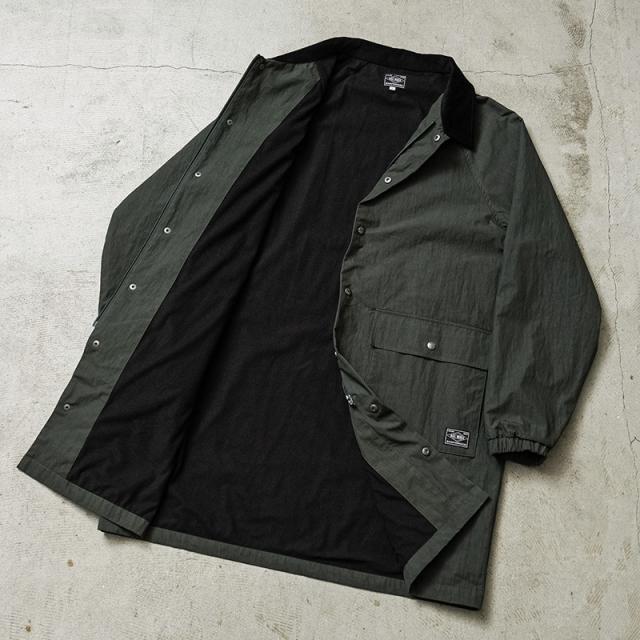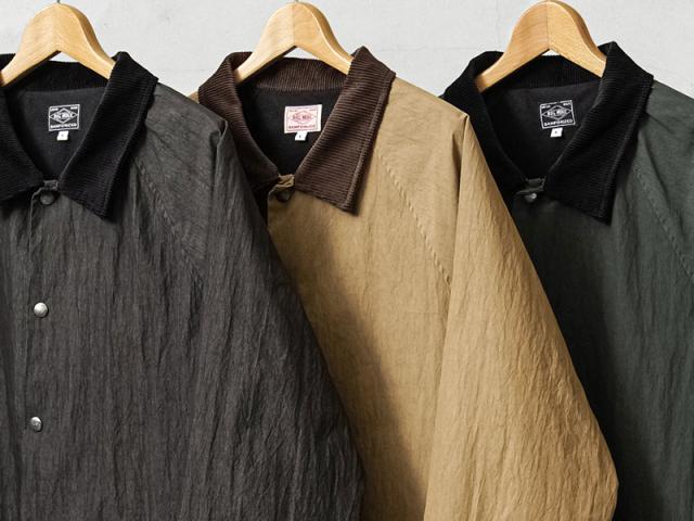 BIG MIKEから、ピグメント加工を施した、コーチジャケットの登場です。ピグメント加工を施したコットンとナイロン混紡した生地を使用。ナイロンの軽量で耐久性にも優れ、またコットンのサラッとした肌触りの良い生地感で快適に着用可能です。ピグメント加工を施しているので、使い込むことで、独特の風合いと経年変化を楽しめるのも嬉しいポイントです。