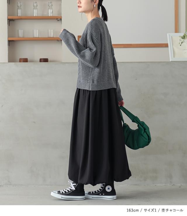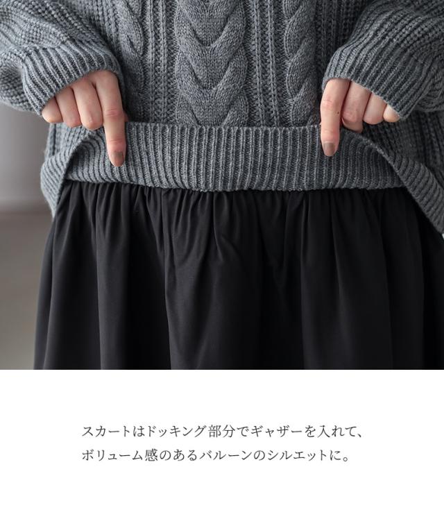 <冬新作>『バルーンスカートドッキングニットワンピース』【メール便不可】【50】[ワンピース 長袖 レディース ドレス ロング丈 ニットワンピ バルーンスカート ドッキング ゆったり 秋 冬]