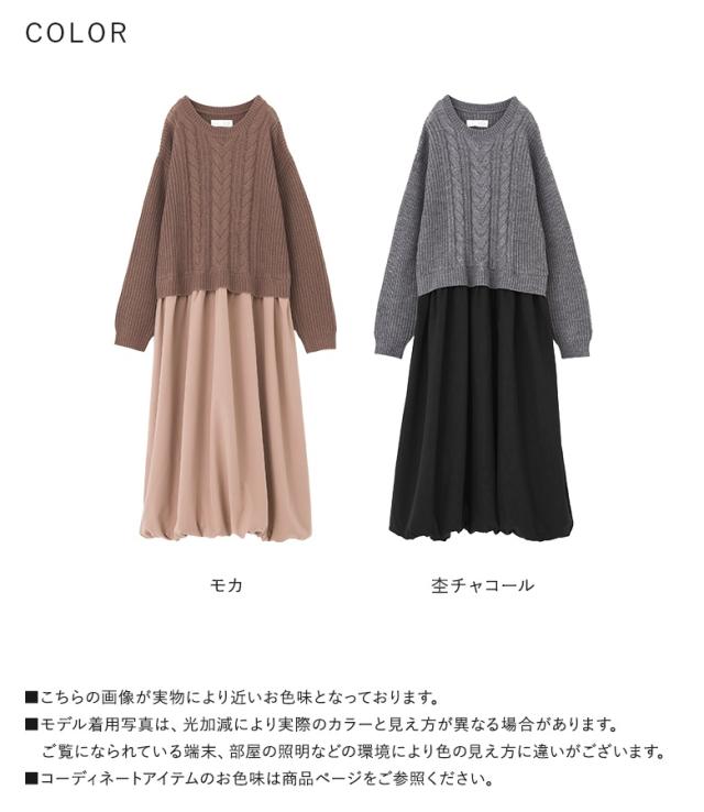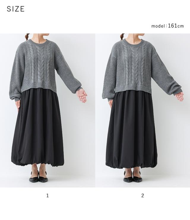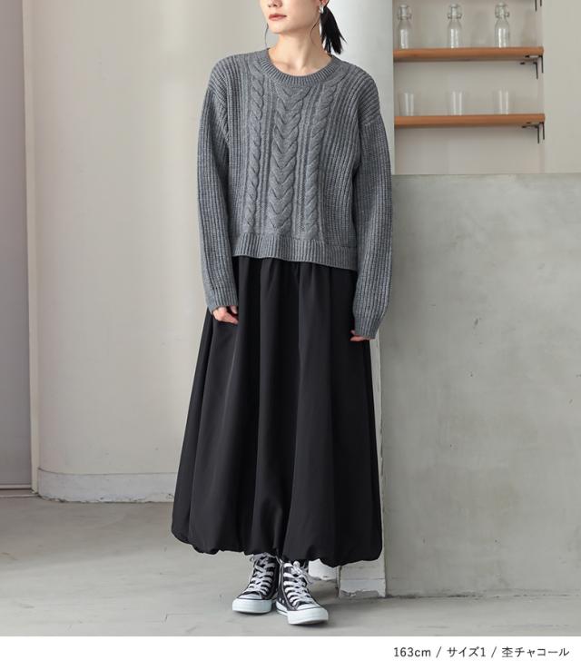ワンピース 長袖 レディース ドレス ロング丈 ニットワンピ バルーンスカート ドッキング ゆったり 秋 冬 【TP】 ニット セーター ケーブルニット ケーブル編み ロングワンピース マキシワンピース ニットワンピース クルーネック n'OrLABEL ノアールレーベル 大人女子 大人可愛い お洒落可愛い 大人カジュアル ベーシック ラフ オフィスカジュアル 上品 きれいめ ナチュラル マキシ丈 裾ゴム バルーン ギャザー 配色 無地 レイヤード 重ね着 フェイクレイヤード おうちで洗える 裏地付き カジュアル シンプル キレカジ フェミニン ゆる 楽ちん Sサイズ Mサイズ Lサイズ LLサイズ 3Lサイズ XLサイズ ぽっちゃり 体型カバー 大きいサイズ プラスサイズ 10代 20代 30代 40代 50代 60代 低身長 高身長 女子会 オフィス 通勤 通学 お買い物 お出掛け 旅行 リゾート レジャー おしゃれ お洒落 トレンド 流行 osharewalker オシャレウォーカー おしゃれうぉーかー ブラウン 茶色 モカ グレー 灰色 チャコールグレー チャコール バイカラー[ID]14do0ll[n'OrLABELバルーンスカートドッキングニットワンピース]