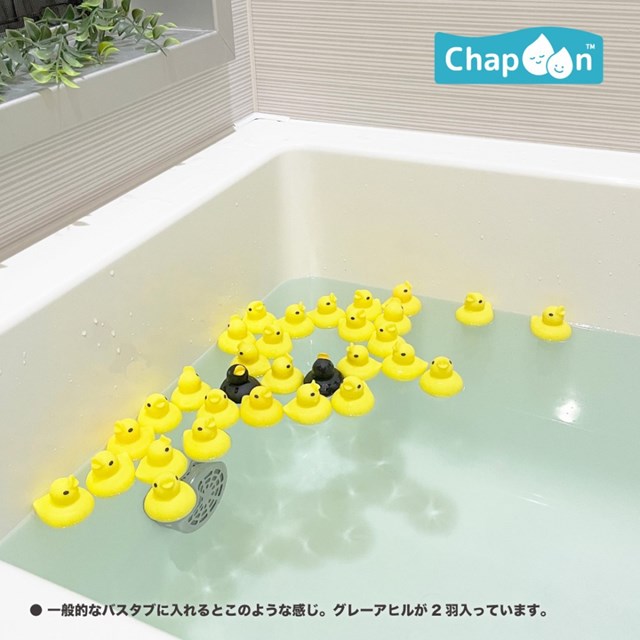 PVC製のミニあひる30羽(黄色あひる28羽 / グレーあひる2羽)がセットになった、定番のあひる風呂。
