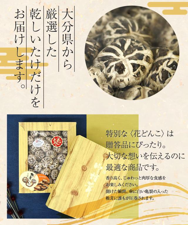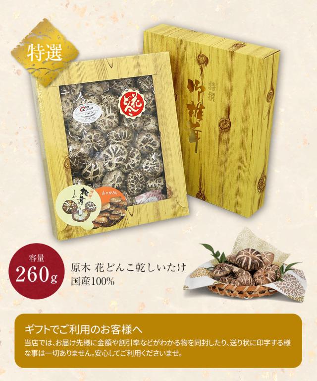 大分県産 原木椎茸 ギフト 花どんこ 260g 国産 御椎茸 しいたけ 椎茸 どんこ 乾しいたけ 乾椎茸 干ししいたけ 干し椎茸 シイタケ 大容量 肉厚 原木 原木栽培 乾燥しいたけ 乾燥椎茸 きのこ キノコ 茸