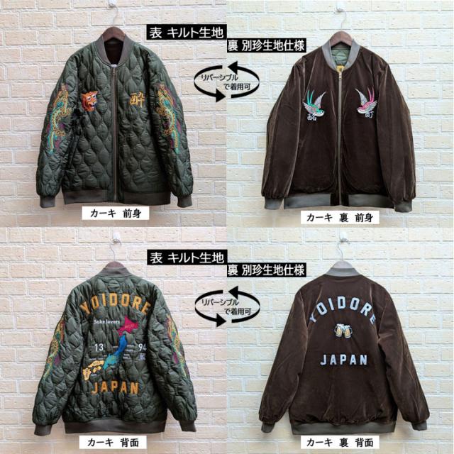 酔いどれ リバーシブル スーベニア ジャケット YOIDORE キルティング 別珍 酔虎 酔龍 刺繍 日本地図 ジャケット ジップアップ フルジップ スカジャン ユニセックス 835401