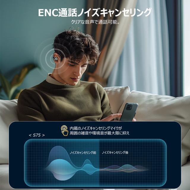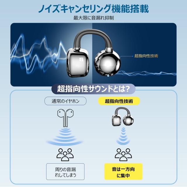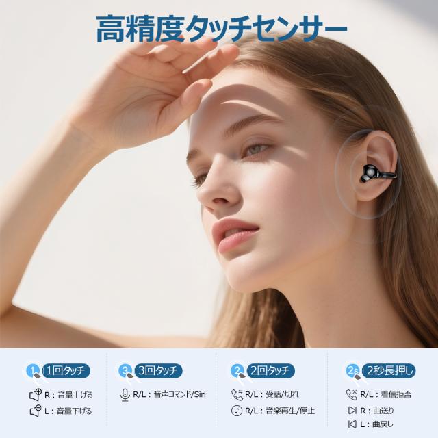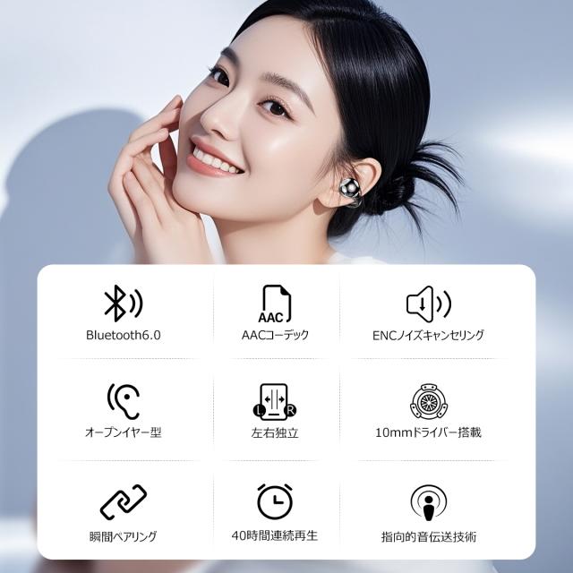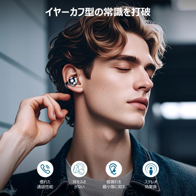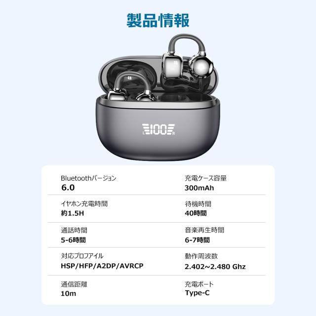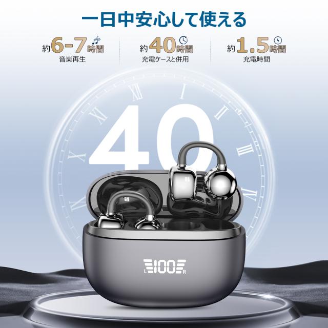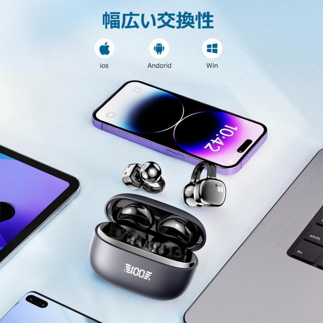 ワイヤレスイヤホン イヤホン Bluetooth6.0 イヤーカフ型 ENCノイズキャンセル ワイヤレス イヤホン 耳挟み式 残量表示 瞬時接続 自動ペア Type-C充電 iPhone17