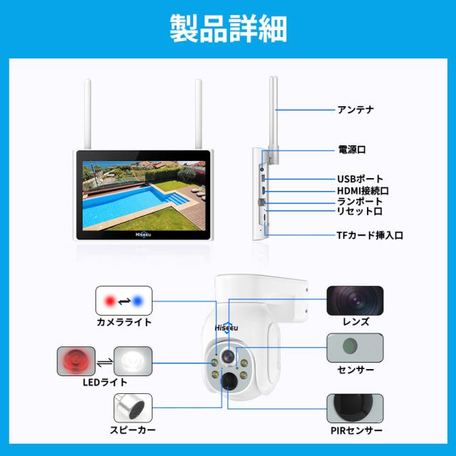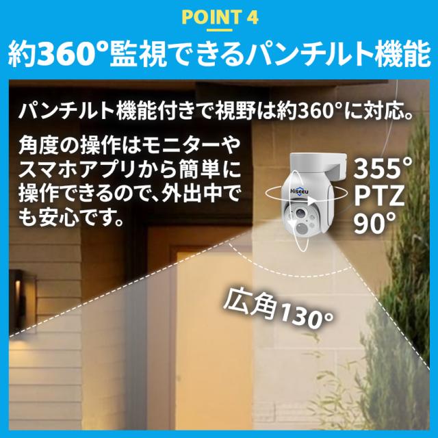 防犯カメラ 屋外 家庭用 ソーラー ワイヤレス 400万画素 wifi パンチルト 4台 モニター一体型レコーダー セット 【返金保証】【RE】