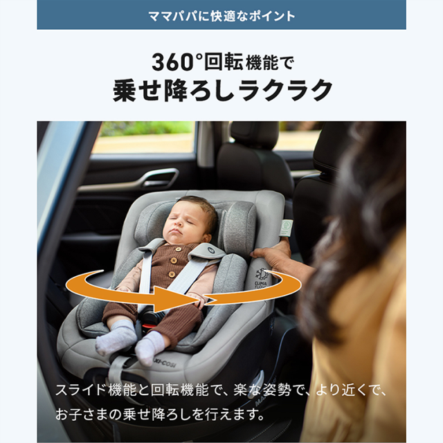 利便性・快適性・安全性を兼ね備えた、360°回転式チャイルドシートです。