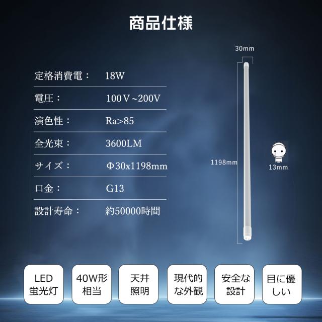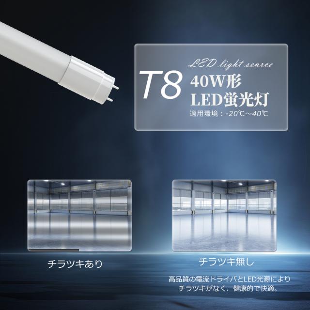 - FL40SS、FLR40、FHF40といった従来の40形直管蛍光灯の代替として互換性抜群。蛍光灯からLEDへのスムーズな移行が可能です。