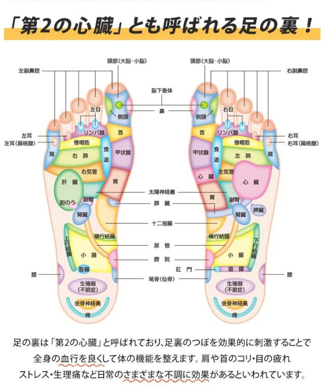 足裏に足つぼの効果部位がプリントされており、