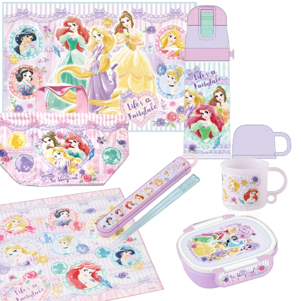 ディズニー プリンセス 26 お買得7点セット お弁当箱 中子付 270ml 箸&箸箱 コップ 2WAY水筒 巾着 レジャーシート ランチクロス