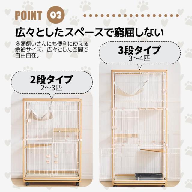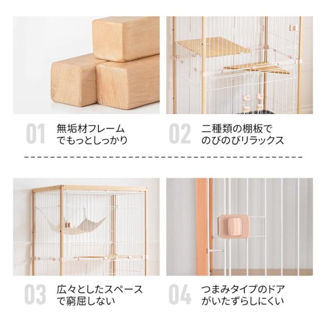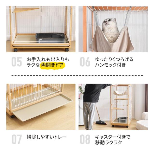 「クーポン配布中」3段 猫ケージ キャットケージ キャットハウス ネコハウス ペットケージ 木製フレーム 高級感 ハンモック付 広々 大型 猫トイレ付 留守番 脱走防止 多頭飼い 多段 留守番対応 おしゃれ 高級感