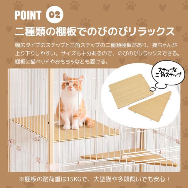 ※棚板の耐荷重は15kgで、大型猫や多頭飼いでも安心!
