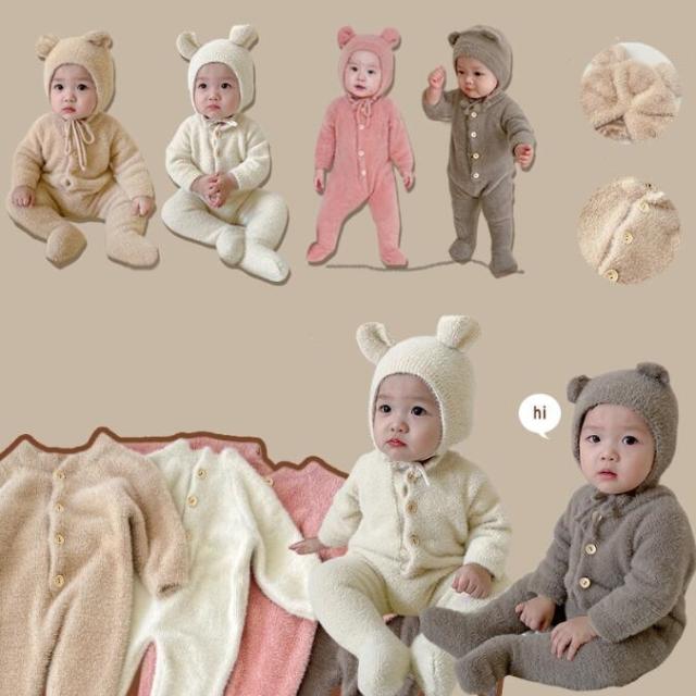 【帽子セット】着ぐるみ クマ ベビー 赤ちゃん ロンパース くま かわいい パジャマ もこもこ ベビー服 ボア あったか ハロウィン 衣装 子供 男の子 女の子
