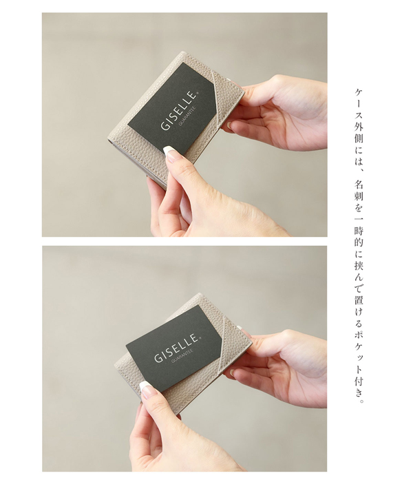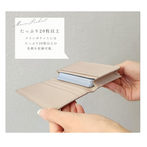 外側には名刺を一時的に挟んで置けるポケット付き。