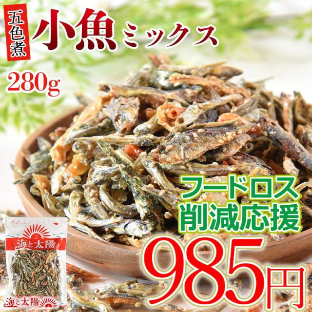 【数量限定】※賞味期限12/31までのため 295円OFF ⇒ \985円/<280g小魚ミックス>(五色煮) おつまみ 送料無料 訳あり 訳アリ 賞味間近 特価 SALE メール便 海と太陽 海鮮 ポイント消化 おやつ クーポン消化 おやつ イワシ カルシウム いわしせんべい 海老 エビ きびなご