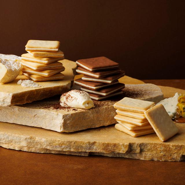 東京ミルクチーズ工場定番の味「ソルト&カマンベールクッキー」と「蜂蜜&ゴルゴンゾーラクッキー」に加え、期間限定味の「ショコラ&マスカルポーネクッキー」を詰め合わせています。
