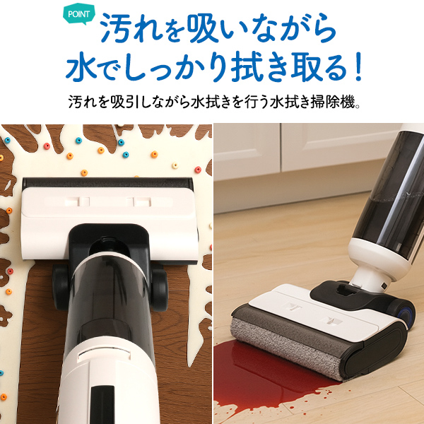 汚れを吸いながら 水でしっかり拭き取る!水拭き掃除機
