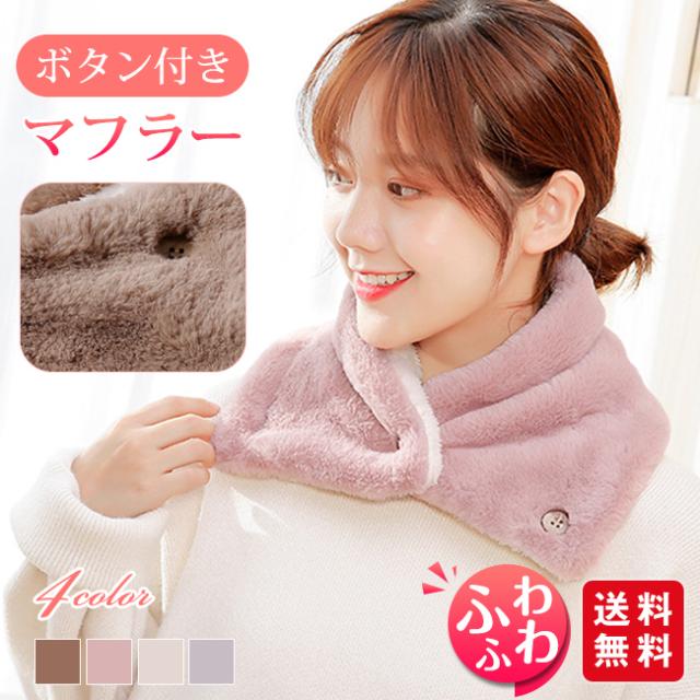 春新作 ネックウォーマー ボタン付き レディース ファー ボタン 防寒 スヌード マフラー ストール ふわふわ もこもこ 軽量 コンパクト 送料無料