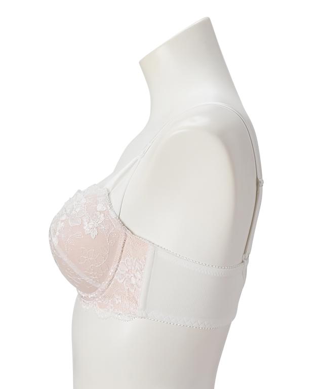 ヌーディーカラーが透けて大人かわいいブラセット。 シンプルなデザインであたりが出にくくフラワー刺繍が映える1着。 脇高仕様だから気になる脇肉もスッキリシルエット 下厚モールドカップで美しいバストラインヘ。 詳しいショーツサイズについては詳細画像内サイズ表を参考にお持ちのショーツと比較してみてください。