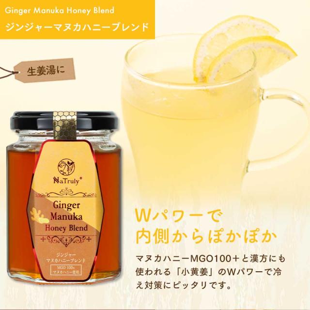 | 注意事項 | 一歳未満の乳児には与えないでください。(妊娠中・授乳中の方は、問題ありません。) 天然のハチミツですので採蜜時期や気象条件、地域などによって、蜂蜜の味や色が異なる場合がございます。無添加・着色をしていない証明です。天然ならではの自然の変化をお楽しみ頂ければと思います。 【ジンジャーマヌカハニーブレンド】 ※生姜は胃腸への刺激が強いため、食べ過ぎにご注意ください。 |