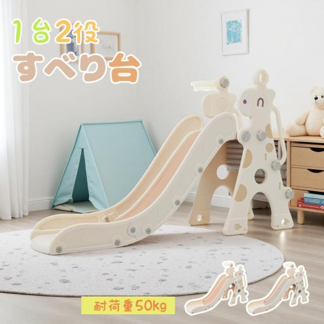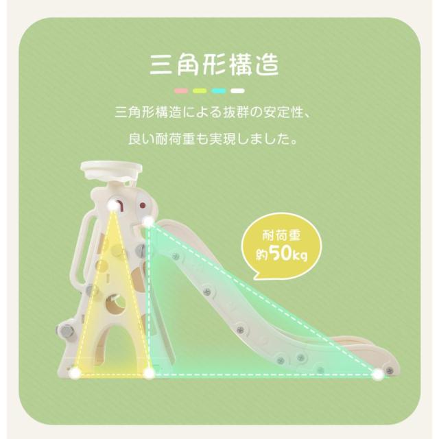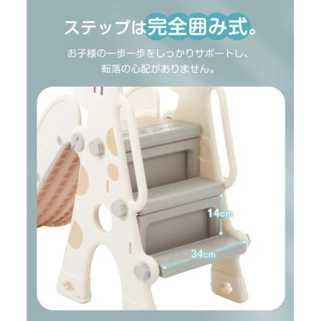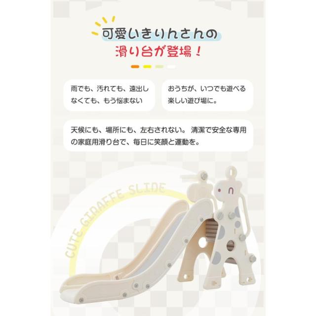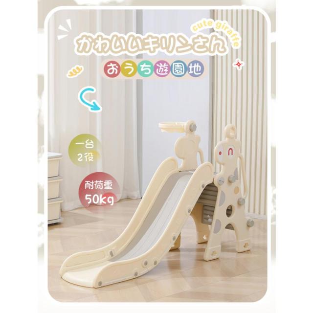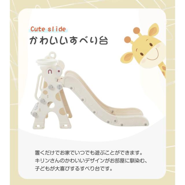 【すべり台】置くだけでお家でいつでも遊ぶことができます。キリンさんのかわいいデザインがお部屋に馴染む、子どもが大喜びするすべり台です。