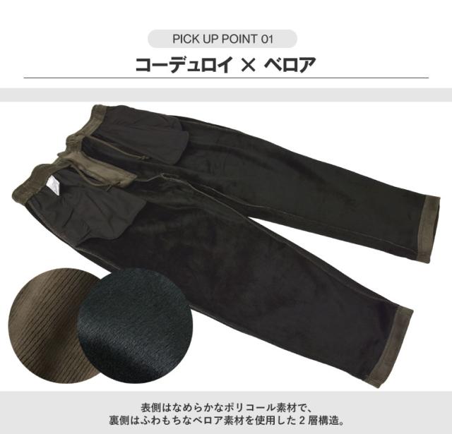 送料無料☆コーデュロイとベロアの組み合わせで暖かなイージーパンツ。
