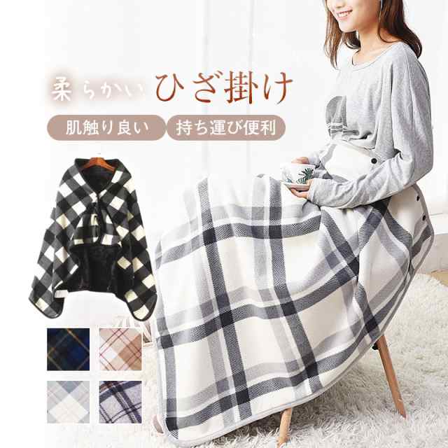 大判ブランケット ひざ掛け ポンチョ 裏起毛 ひざかけ 掛け布団 防寒 ブランケット 柔らかい チェック柄 大判 羽織る 100×