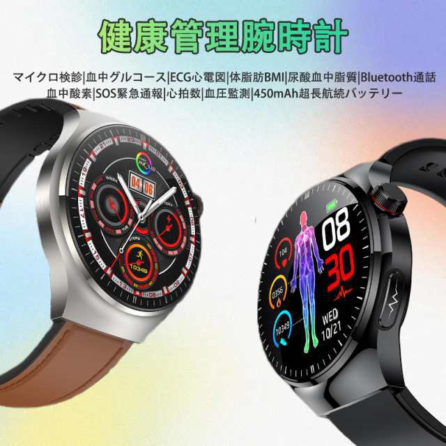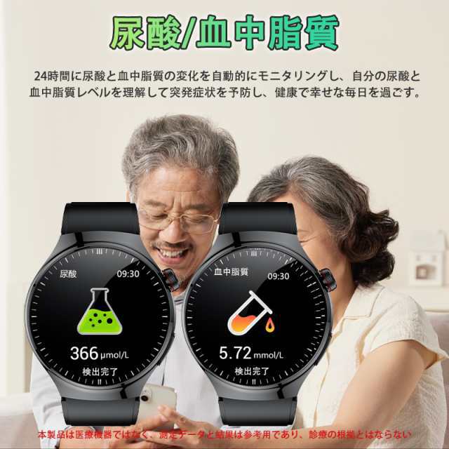 スマートウォッチ 血圧 血糖値測定 BMI 尿酸値 血中脂質 血中酸素 睡眠監視 体温検知 ストレス監視 呼吸訓練 女性生理管理 リモートケア 心拍数 活動量計 歩数計 通話機能付き 着信&メッセージ通知 iPhone Android対応 敬老の日 プレゼント