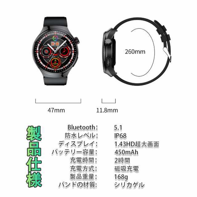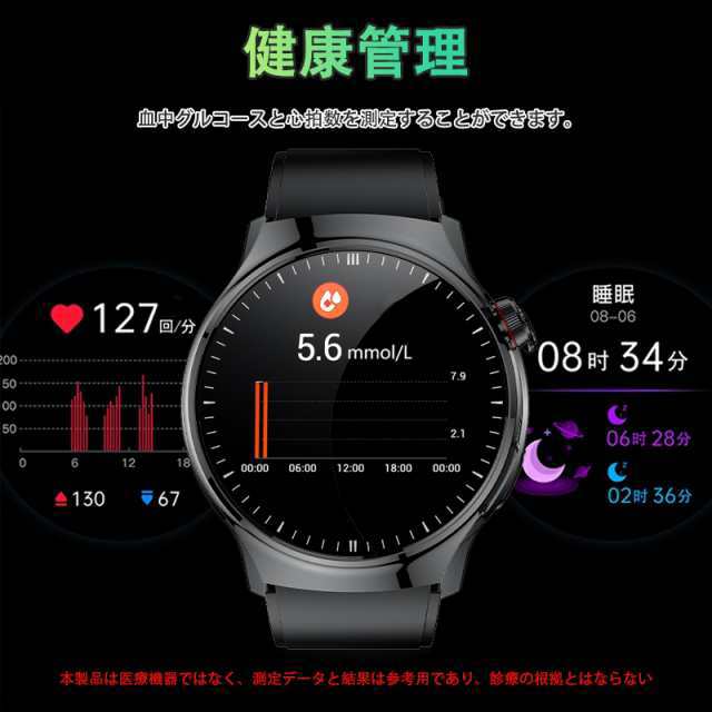 スマートウォッチ 血糖値 日本製センサー 尿酸値 血圧測定 血中酸素 脂質 体温監視 心拍数 活動量計 歩数計 iPhone Android対応 IP68防水 1.43インチ 天気予報 目覚まし時計 腕上げ点灯 音楽制御 SOS緊急連絡 座り過ぎ通知 女性生理管理 音声アシスタント スマホ探し 日本語取扱説明書