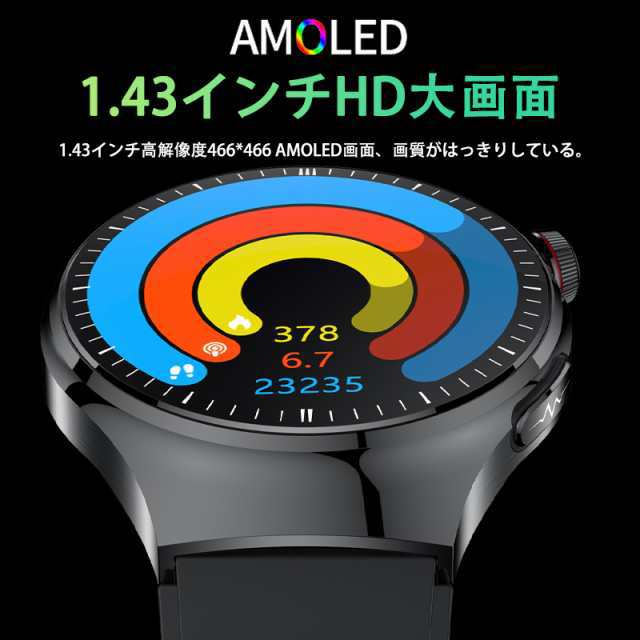 【1.43インチ大画面&多種類文字盤】HDの明瞭さで、健康とフィットネスの重要なデータを確認してください。3Dガラスの工芸に合わせて、より高い解像度の視覚体験とスマートフォンのようなタッチ触感を楽しめ、もっと便利に操作することができます。例のない快適な視覚感と優れた操作感をもたらし ます。多国の言語を自由に設定できます。更に、文字盤DIY機能もあり、携帯電話中の写真を利用して、お好きな文字盤を作る事もできます。毎日のお気持ちによって、新たな活力を注ぎます。好きな文字盤スタイルを取り替えましょう。