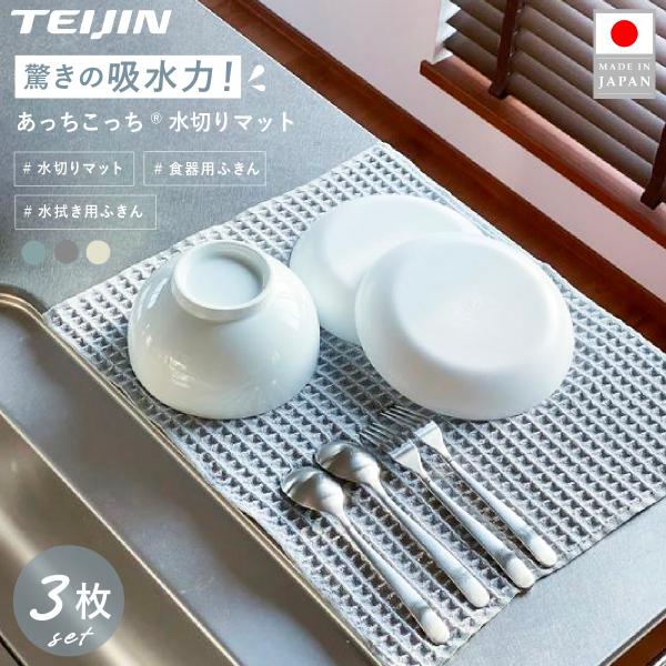 テイジン あっちこっち水切りマット 3枚 吸水 速乾 抗菌 におわない ふきん 水切りラック カゴ代わり キッチン 吸水マット 大判 おしゃれ かわいい 帝人 日本製
