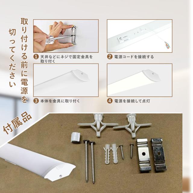 - ★天井でベースライトと付属のネジ・取付金具で固定し、電線をつなぐだけで簡単に設置できます。工具があれば誰でも簡単施工。