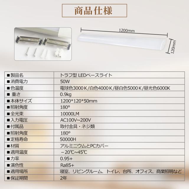 - ★1200×50×120mmのスリムなトラフ型ベースライト。どんな空間にも馴染むミニマルデザインです。無駄のない美しい外観で清潔感抜群。