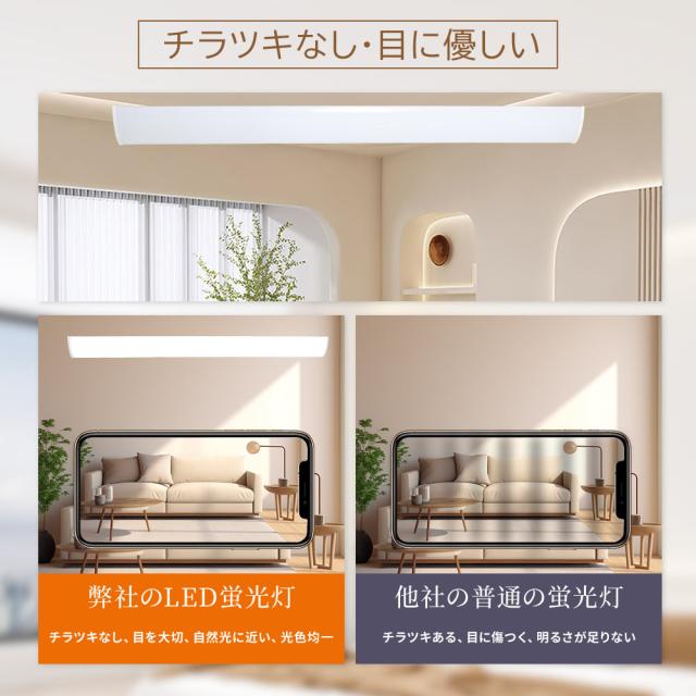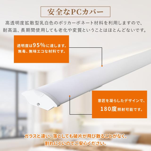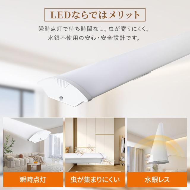 スリムでどんな空間にも馴染むデザインの高効率LEDベースライトです。即時点灯で目に優しく、長寿命&省エネ設計。PCカバー採用で耐久性も抜群。明るく均一な照明が特徴で、オフィス・店舗・倉庫・ご家庭など幅広い場所で活躍します。