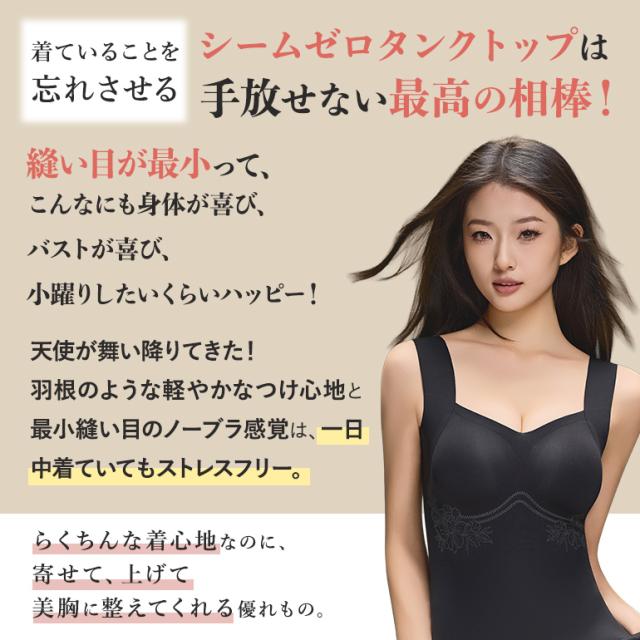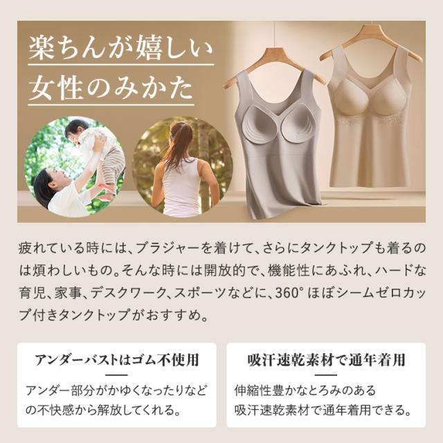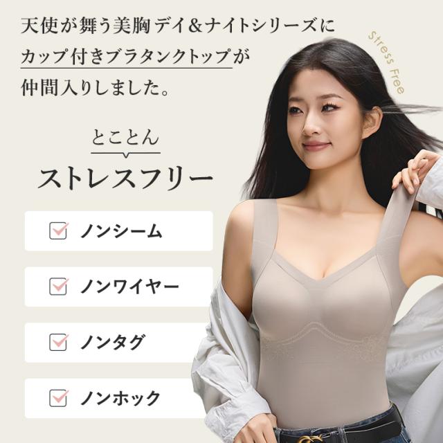 ブラトップ カップ付きタンクトップ インナー レディース ナイトブラ 360°シームゼロ アンダーフリー 天使が舞う美胸 デイ&ナイト ブラタンク ノンワイヤー シームレス ブラ機能付き アンダーゴムなし 吸汗速乾 ナイトブラ すっきり見せ 痩せ見え